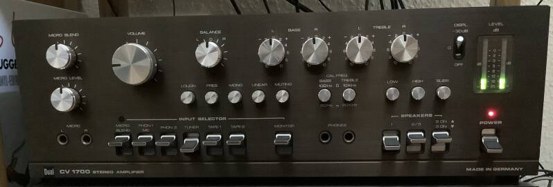 CV 1700, Spitzengerät, in den 80-zigern unerschwinglich (Ausgangsleistung: Musik 2x165 W, Sinus Dauertonleistung 2x110 W), gekauft 2019 und durch Hajo aus dem Dualboard instandsetzen lassen